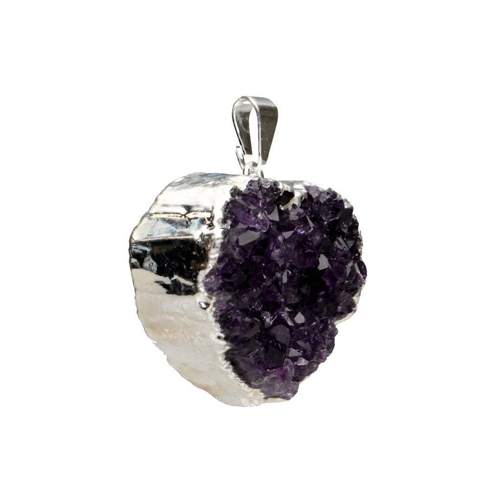 Amethyst geodes are traditionally valued for inner peace, mental clarity, and energetic cleansing . Worn in a heart shape, they connect these qualities with themes such as self-love, mindfulness, and conscious presence.