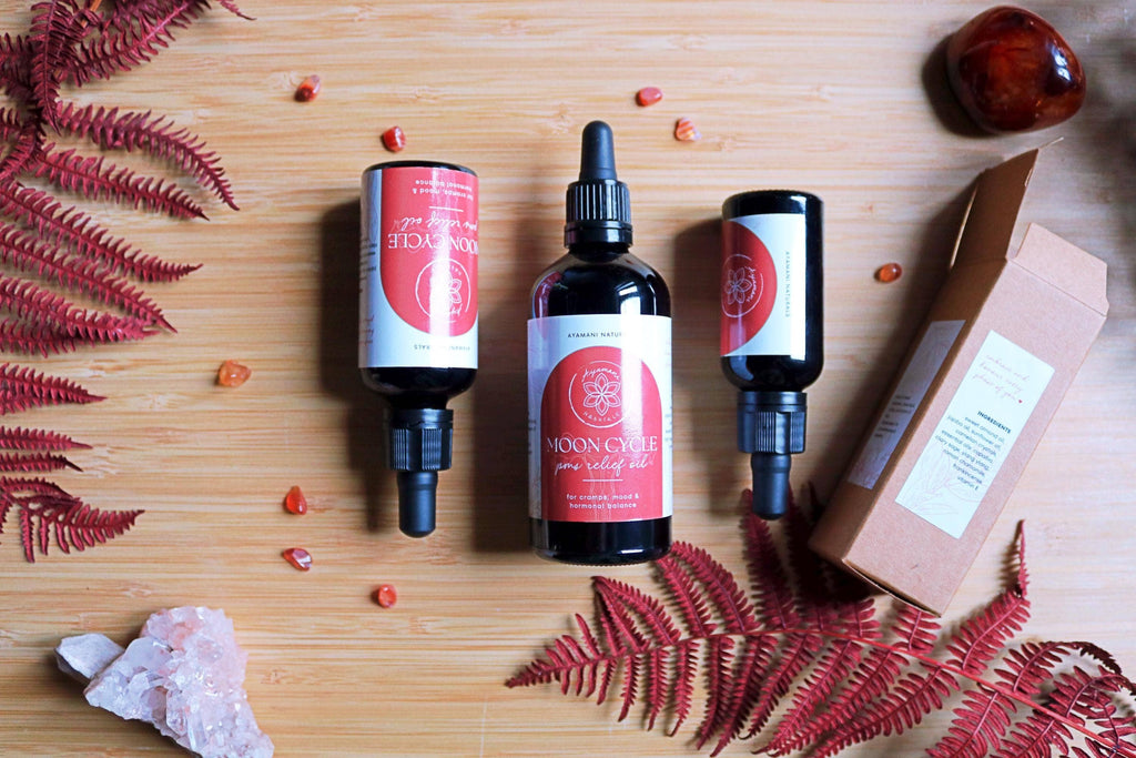 Das Moon Cycle PMS Relief Öl von Ayamani Naturals, erhältlich im Mana Shop, ist ein liebevoll handgemachtes Ritualöl, inspiriert von traditionellen Kräutern, ätherischen Ölen und achtsamer Selbstfürsorge. Entwickelt für Momente des Rückzugs, des Loslassens und der sanften Pflege während des Mondzyklus, ist dieses aromatische Öl ein wunderbarer Begleiter für Frauen, die ihre Zykluszeit bewusster gestalten möchten.