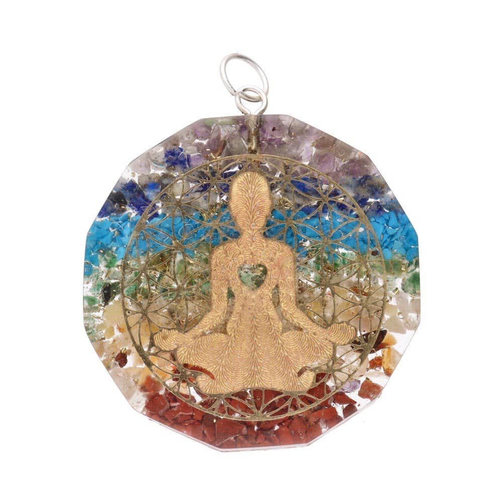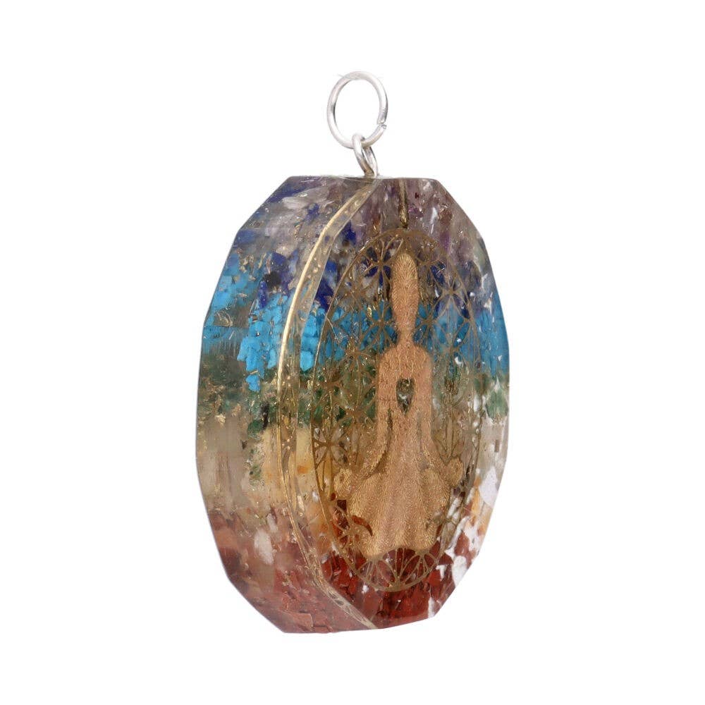 The Chakra Buddha pendant in orgonite style from Vives de la Cortada SL combines spiritual symbolism with energetically inspired design. The Buddha image represents mindfulness, serenity, and awareness , while the integrated chakra colors symbolize the free flow of life energy.