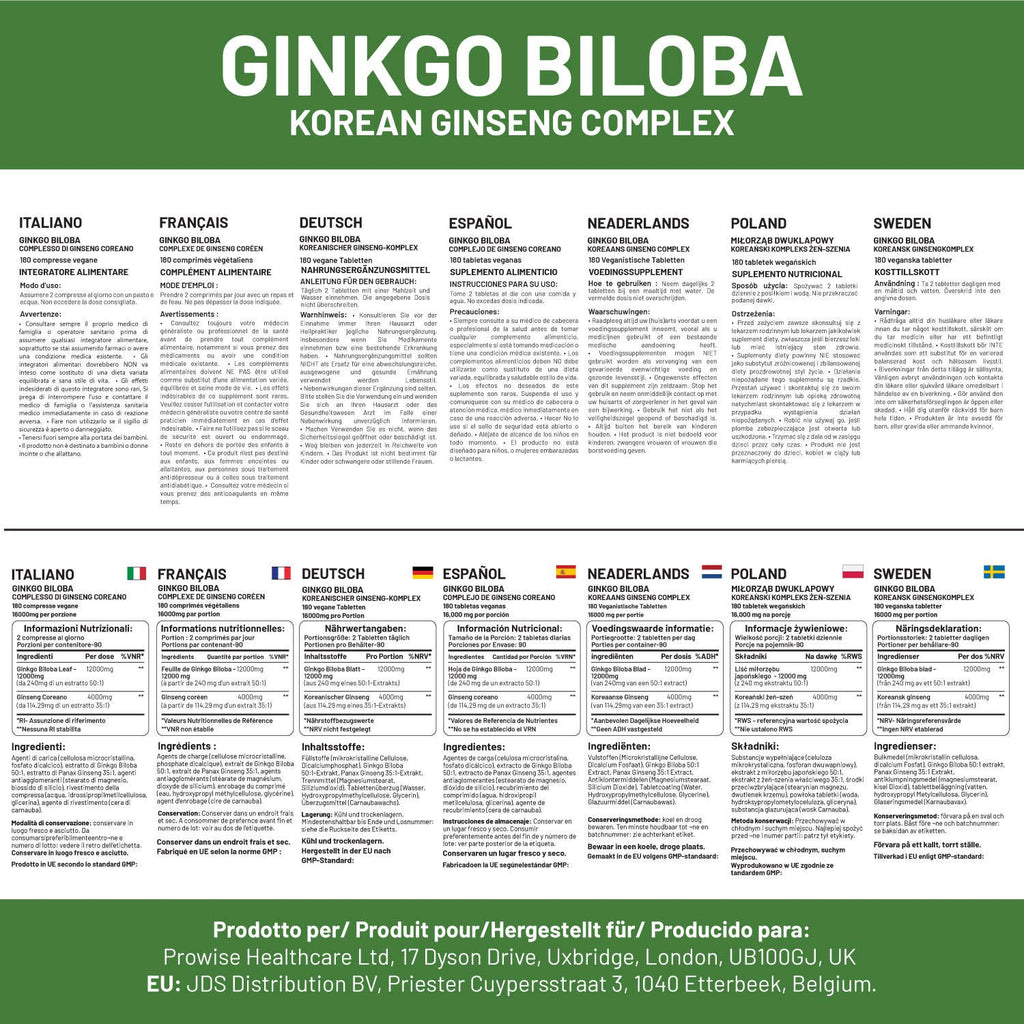 Prowise Healthcare - Ginkgo Biloba und Koreanische Ginseng Tabletten 16.000 mg, 180 vegane Tabletten