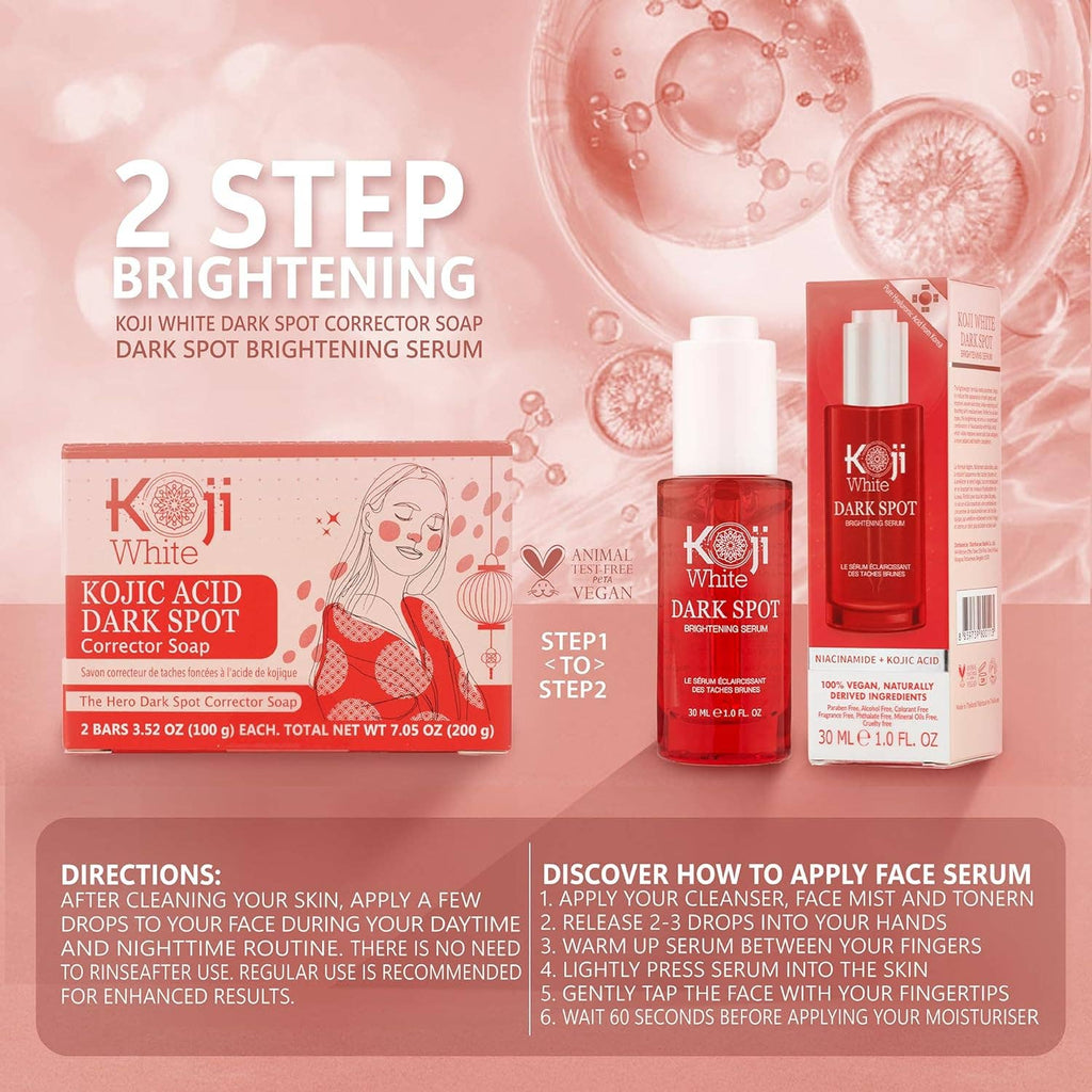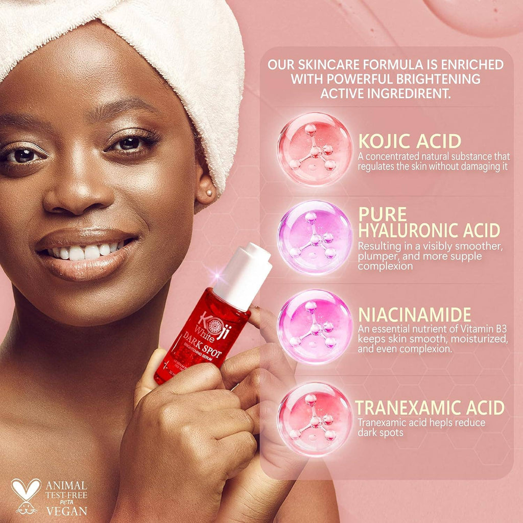Das Koji White Dark Spot Brightening Serum ist eine hochwirksame Pflegeformel, die gezielt gegen dunkle Flecken, Pigmentstörungen und ungleichmäßigen Hautton wirkt.
