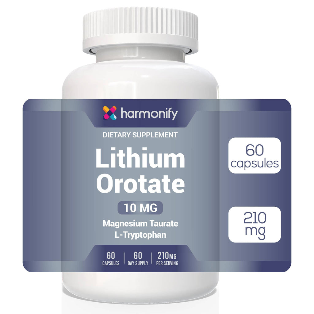 Lithiumorotat 10 mg mit Magnesiumtaurat & L-Tryptophan – 60 Kapseln | HARMONIFY