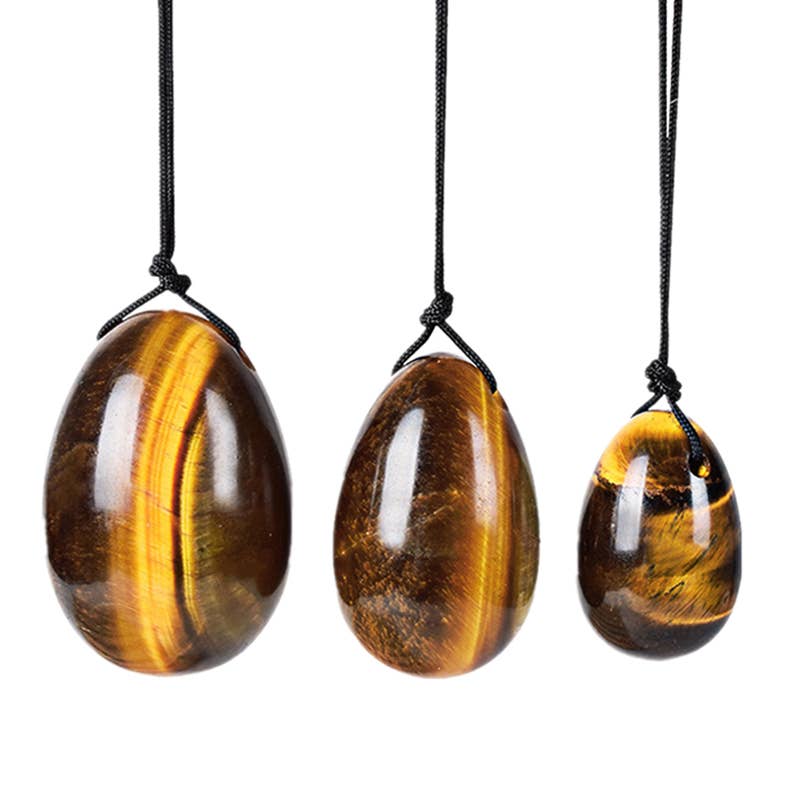 Die gebohrten Tigerauge-Yoni-Eier sind in drei Grössen erhältlich, um unterschiedlichen Vorlieben und Erfahrungen gerecht zu werden.