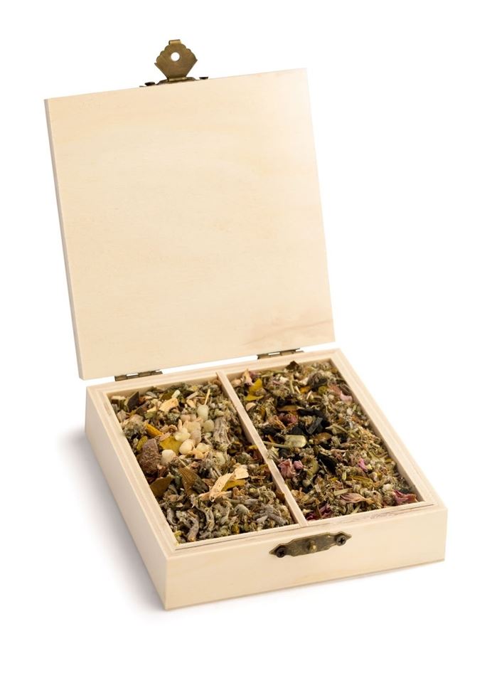 Die „Weihnacht“-Mischung öffnet das Herz und schafft eine Atmosphäre der Geborgenheit. Mit Beifuss, Alantwurzel, Johanniskraut, Rosenblättern, Mistelkraut, Rosmarin, Zimt und Storax.