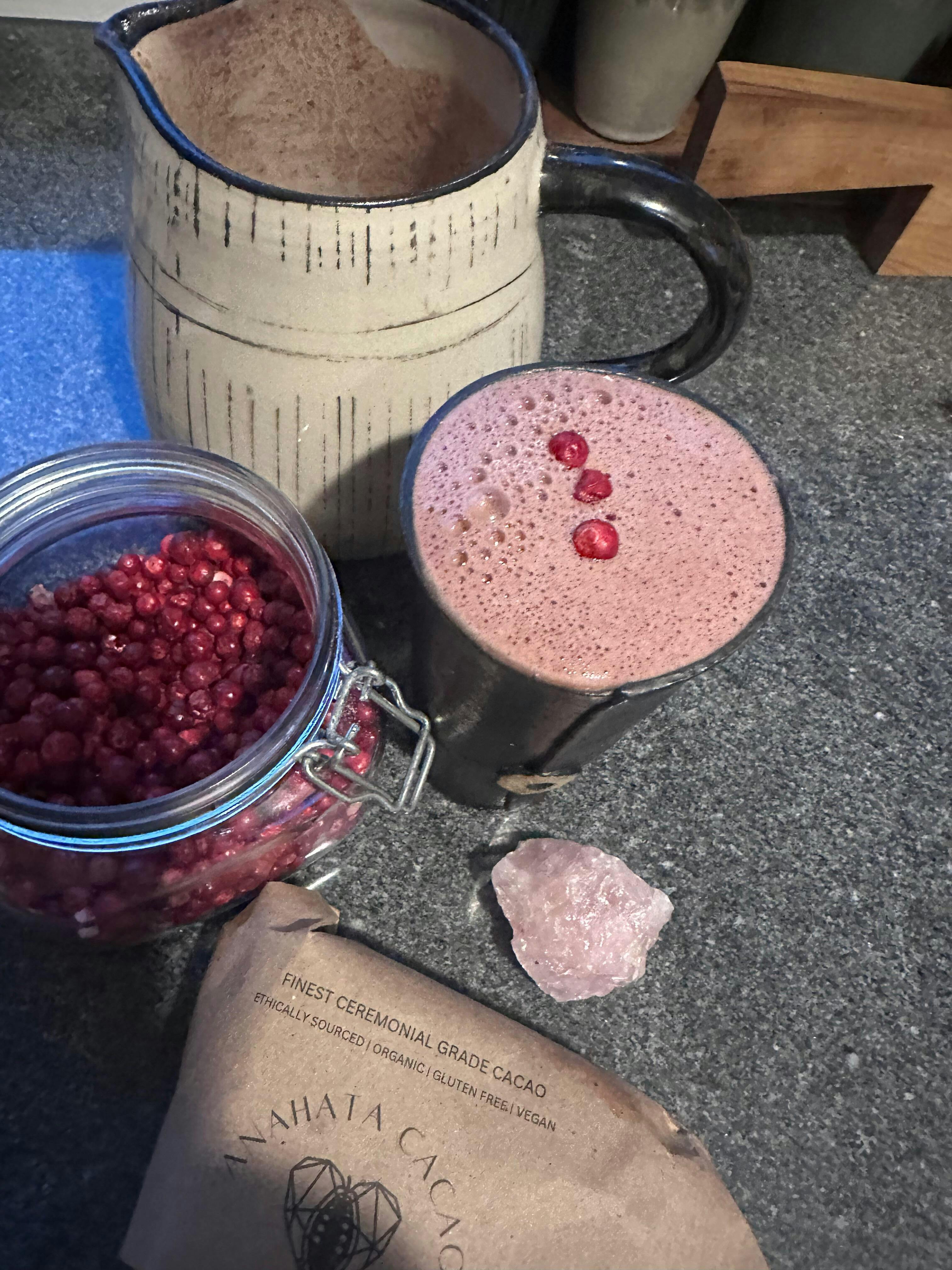 In der Verpackung hat es in der Innenseite eine Beschreibung mit tollen Infos. Wie zubereiten, ein Rezept, über die Wirkung, Herkunft sowie Verwendungszwecke. Wir empfehlen 28-42 Gr Kakao pro Person, wobei 42gr als zeremonielle Dosis gilt und sehr bewegend sein kann für manche. In den Zeremonien für Gruppen verwendet die Lieferantin immer 33 gr pro Tasse und sie hat wunderbare Erfahrungen gemacht damit.