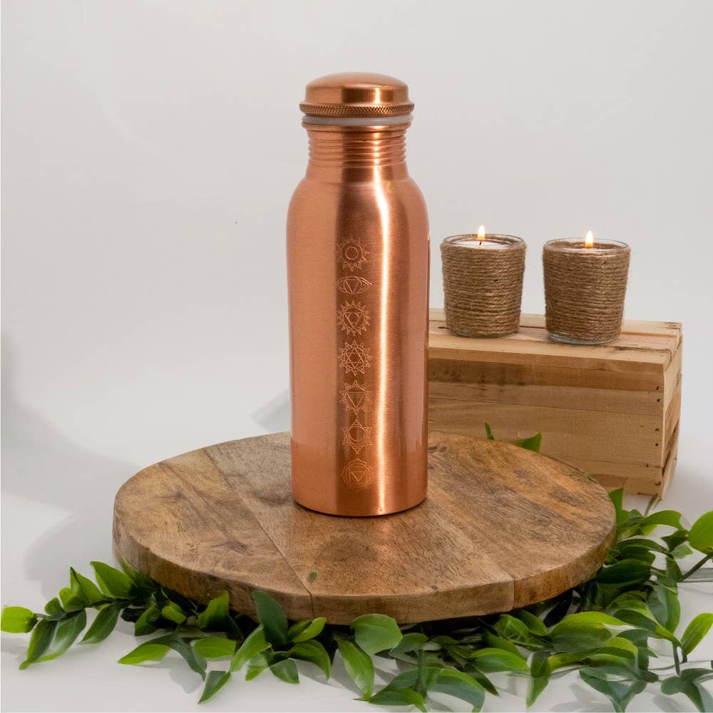 Ayurveda Specialist B.V. – Reine Kupferwasserflasche 7 Chakren, matt (750 ml)
