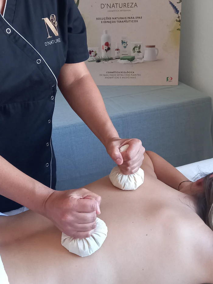 Die Anwendung von erwärmten Kräuterstempeln unterstützt: