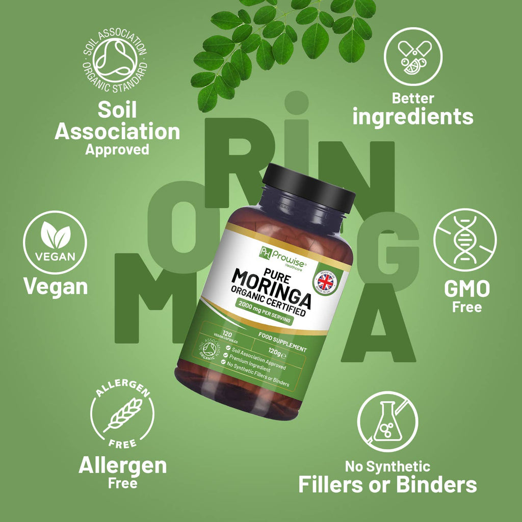 Die Prowise Healthcare Bio-Moringa-Kapseln 2000 mg enthalten hochwertiges Bio-Moringablattpulver ohne Füll- oder Zusatzstoffe. Moringa (Moringa oleifera) wird traditionell als nährstoffreiche Pflanze geschätzt und ist heute ein beliebtes Superfood zur Ergänzung einer bewussten Ernährung.